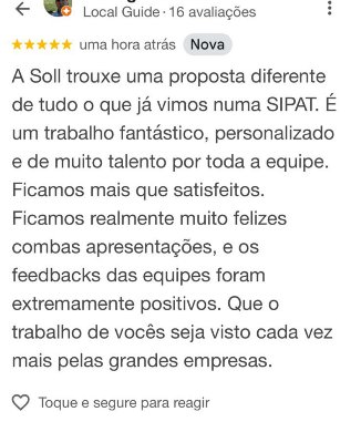 A Soll Treinamentos é referência em liderança, SIPATs e team building. Seus treinamentos unem conteúdo de qualidade com experiências práticas que realmente transformam equipes. Recomendo plenamente para qualquer empresa que queira desenvolver pessoas e fortalecer seu time.